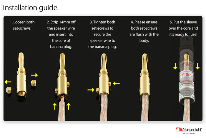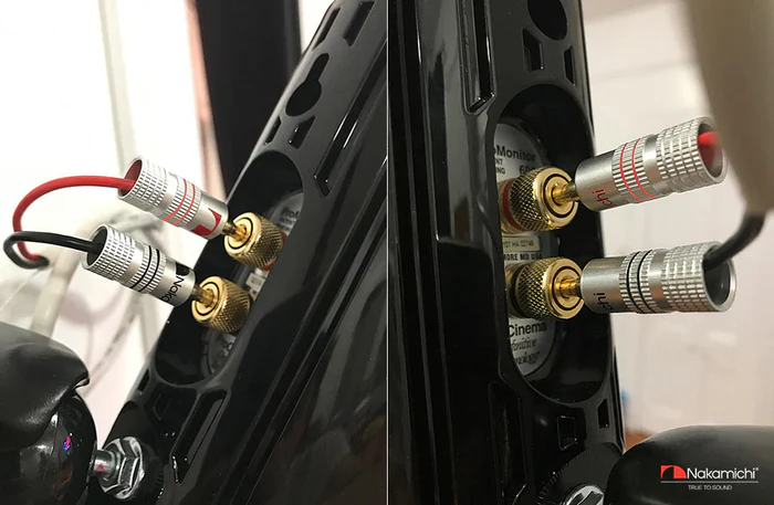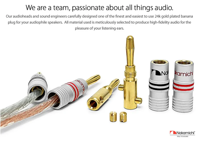 ✅ Nakamichi banana plugs fit directly into your audio component binding posts seamlessly, saving you the hassle of screwing in or unscrewing speaker wire – especially when space is tight.